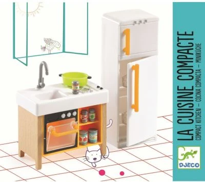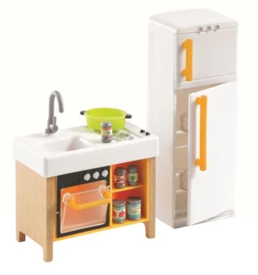 MONI Holz-Puppenhaus Lilly EV10, 3 Ebenen 14-tlg. Möbel-Set Fertig Montiert Puppenhäuser