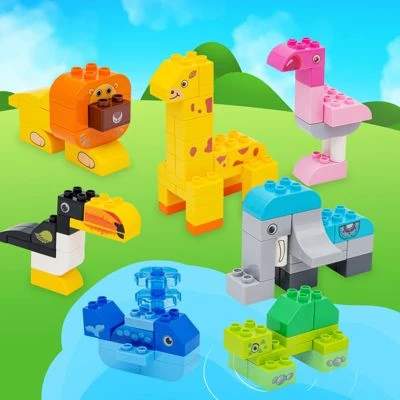 • Ideal fuer die kleinen Bausteinhelden. Eine bunte Tierwelt aus großen Klemmbausteinen. Perfekt für kleine Haende!