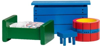 Dieses tolle Möbelset ist das perfekte Geschenk für Kinder, die von dem Spielhaus „Villa Kunterbunt“ der Marke Micki nicht genug bekommen! In dem Set sind ein Bett, ein Kaminholzbehälter, eine Wanne und ein Fußhocker enthalten.