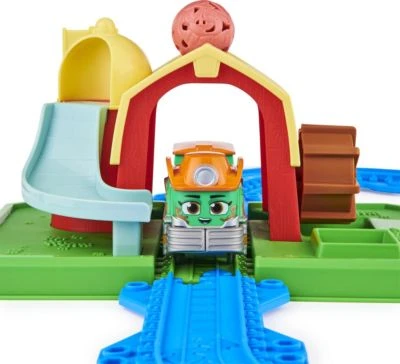 Der Tag startet früh auf Farm-Friedas Bauernhof, denn hier gibt es rund um die Uhr etwas zu tun. Zum Glück ist die kleine Lokomotive mit einem praktischen Güterwaggon ausgestattet, der ihr die Arbeit auf dem Hof erleichtert. So kann sie sich ganz einfach mit der Rutsche beladen lassen und schon kann der Ball einmal rund herum transportiert werden. Mit Silo, Rutsche und Mühlrad ist die Scheune bestens ausgestattet und ihrem Original-Vorbild aus der Serie nachempfunden. Fans von Mighty Express werden sich über dieses Spielset freuen und könne hier ihre Lieblingsszenen nachspielen oder sich eigene tolle Abenteuer einfallen lassen.