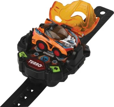 Perfekt für die „Turbo Force Racer“ von VTECH geeignet: Diese Rennstrecke ist teilweise zweispurig und besitzt superenge Kurven und durchsichtige Röhren, durch die die Autos flitzen können. Sogar ein Looping und eine Rampe sind mit dabei! Das tolle Set beinhaltet sogar ein Fahrzeug und ein Armband mit Fernsteuerung, sodass Kinder gleich loslegen können. Die Rennstrecke kann mit bis zu zwei Fahrzeugen gleichzeitig bespielt werden und bietet so nicht nur Spielespaß für Ihr Kind, sondern sogar noch für einen Freund oder ein Geschwisterchen. Die verschiedenen Streckenteile können sogar auf vier verschiedene Arten zusammengesetzt werden. Damit bleibt der Spielspaß auf jeden Fall abwechslungsreich!